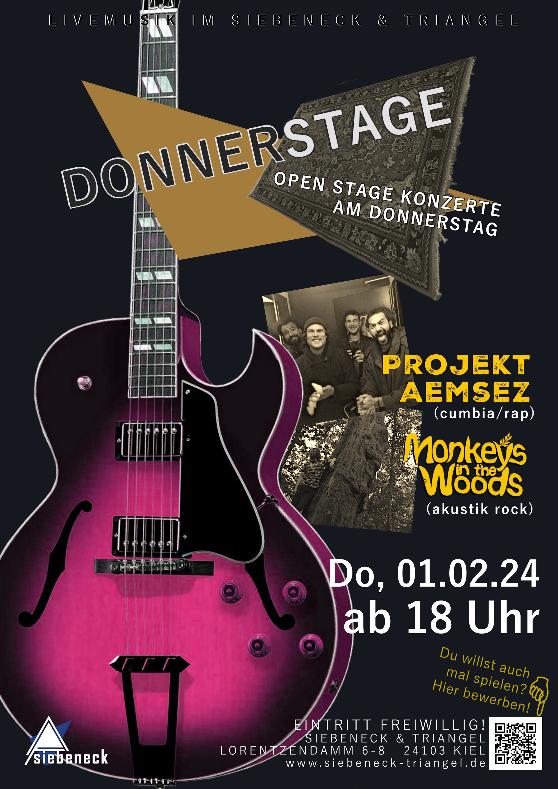 Jeden Freitag ab 18 Uhr kommt die Kieler Musikszene zusammen um zu jammen. Hier geht es um freies Spielen, Zusammenkommen und eine gute Zeit zu haben!